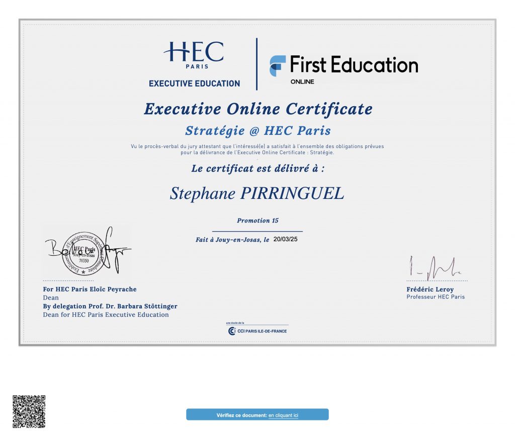 Diplômé en gestion, certifié en stratégie d’entreprise et en accompagnement des dirigeants, il complète ses compétences en permanence par la pratique et l’échange avec d’autres experts. Chaque mission, chaque rencontre, chaque difficulté devient une occasion d’affiner sa méthode. Et de renforcer l’utilité de son accompagnement.